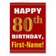 Este sencillo diseño de tarjetas de felicitación con temática de cumpleaños presenta un cálido deseo de cumpleaños como "¡FELIZ 80 cumpleaños, nombre!" en la parte delantera, en negrita con un fondo de color rojo. El número de cumpleaños tiene un aspecto de color falso/imitación dorado. El nombre en la parte delantera se puede personalizar. El interior incluye un mensaje de cumpleaños que se puede personalizar. Una tarjeta de felicitación como esta podría ser una manera divertida de ofrecer deseos de cumpleaños a alguien que esté celebrando su ochenta cumpleaños. [~Z0000276]