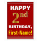 Este sencillo diseño de tarjetas de felicitación con temática de cumpleaños presenta un cálido deseo de cumpleaños como "¡FELIZ 2º CUMPLEAÑOS, nombre!" en la parte delantera, en negrita con un fondo de color rojo. El número de cumpleaños tiene un aspecto de color falso/imitación dorado. El nombre del frente puede ser personalizado. El interior incluye un mensaje de cumpleaños de personalizable. Una tarjeta de felicitación como esta podría ser una manera divertida de entregar deseos de cumpleaños a alguien que está celebrando su segundo cumpleaños. [~Z0000276]