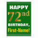Este sencillo diseño de tarjetas de felicitación con temática de cumpleaños presenta un cálido deseo de cumpleaños como "¡FELIZ CUMPLEAÑOS 72, nombre!" en la parte delantera, en negrita con un fondo de color verde. El número de cumpleaños tiene un aspecto de color falso/imitación dorado. El nombre del frente puede ser personalizado. El interior incluye un mensaje de cumpleaños que se puede personalizar. Una tarjeta de felicitación como esta podría ser una manera divertida de entregar deseos de cumpleaños a alguien que está celebrando su cumpleaños número setenta y dos. [~Z0000279]