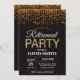 Tarjeta de la invitación del fiesta de retiro con las luces de la secuencia del purpurina del negro y del oro. Para el arreglo para requisitos particulares adicional, haga clic por favor el "personalizar él" botón y utilice nuestra herramienta de diseño para modificar esta plantilla.
