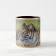 ¡Comience su mañana con un rugido! taza de café del Dos-tono con imagen de un tigre creado de ilustraciones originales por Sherrie H Sinclair: dropr.com/sherriehsinclair
