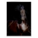 Esto es una foto original de un semental frisio potente que emerge de la oscuridad alrededor de él.