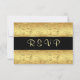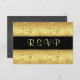 Invitación negra floral dorada RSVP. Los elementos coincidentes se muestran a continuación:
