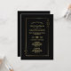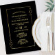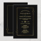 Invite a sus amigos y seres queridos a su boda con esta moderna invitación a una boda negra con marcos dorados. Esta invitación es apropiada para parejas que han decidido intercambiar sus votos en un lugar separado donde celebran su unión con amigos y seres queridos.