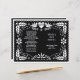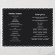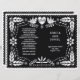 Negro y blanco papel picado de pájaros amorosos boda fiesta programa doblado. Muestra dos pájaros blancos y un corazón de amor con la palabra amor y flores, hojas y pequeños puntos sobre fondo negro. Este diseño de plantilla de boda floral estilo arte folclórico mexicano es totalmente personalizable.