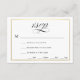 Una tradicional y elegante tarjeta rsvp de escritura de caligrafía en blanco y negro con borde dorado. Guión "Rsvp" por un lado con respuesta por fecha, y nombre de invitado y asistencia, elección de comida por el otro lado. Borra las líneas del campo de texto que no necesite. También puede quitar el borde dorado.