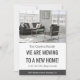 Esta moderna invitación en movimiento ofrece la opción de añadir una foto familiar o una foto de su nuevo hogar.