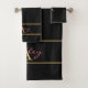 Fondo de textura negra a la moda con rayas doradas y monograma