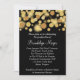 Puntos elegantes de este del diseño de las características bokeh del oro y un fondo negro. El humor de esta invitación es uno de la celebración y del entusiasmo. Personalice esta invitación elegante de la graduación con su información. Si usted necesita el espacio para más información, la parte posterior de la invitación tiene un montón de sitio.