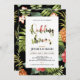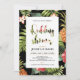 Esta exclusiva ducha tropical con forma de novia ofrece un hermoso patrón floral tropical con una tipografía elegante.