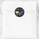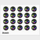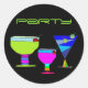 Pegatinas/sellos para sobres fiestas de bebidas coloridas con tres cócteles y texto "fiesta" verde neón.