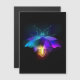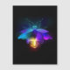Luciérnagas mecánicas antiguas con bombilla de luz y finas alas brillan naranja, violeta, turquesa sobre fondo negro. Estilo Steampunk.