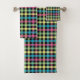 Patrón de Gingham con rosa, verde, azul, amarillo y negro.