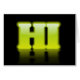 Este hará que tus ojos bailen. Un gran HI renderizado en neón amarillo brillante contra un fondo negro. Una tarjeta perfecta para que alguien diga, Hola.