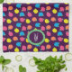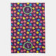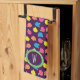 Los rosas estilizados, de color rosa neón brillante, azul, amarillo y coral con hojas verde neón, se esparcen a través de un fondo violeta profundo para crear un divertido patrón floral. Personalizar el monograma de esta toalla con sus iniciales para que sea único.