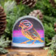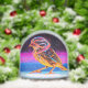 A striking neon illustration of a sparrow adorned with glowing rings and vibrant accents, set against a bold synthwave-inspired backdrop of purples, blues, and pinks. This retro-futuristic bird artwork is perfect for fans of vaporwave aesthetics, glowing digital art, and surreal animal portraits.