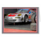Un coche de carreras se sienta en los pozos de sus jacks con neumáticos de lluvia listos para seguir.