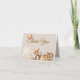 This sweet Baby Shower thank you note features a cute teddy bear sitting in a basket with his blanket and bottle. Beside him is an outfit and some wrapped gifts. A little hat is hanging on the T in Thank You. A light tan lattice work is in the background. Inside the card is a message thanking your guests and at the bottom is an old fashioned stroller. The message inside is fully customizable.