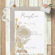 Este diseño sencillo pero elegante incluye un ramo de flores naturales neutras, blancas y doradas. Forma parte de la Neutral Tan Wildflowers Modern Boda Suite creada por Simply Farmhouse Press.