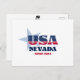 Postal de Nevada. Un diseño tipográfico creativo que resume la esencia de Nevada con colores rojo, blanco y azul audaces, y elementos patrióticos, incluyendo estrellas y rayas.