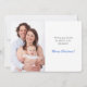 Dos de tus fotografías especiales toman el centro del escenario en esta moderna tarjeta plana de vacaciones. La foto del frente está enmarcada dentro de un bonito fondo azul y blanco de estilo bokeh nevado. El texto blanco en la parte superior dice "Alegría al mundo", mientras que tu texto de firma personalizado está en azul gris claro en el lado izquierdo de la fotografía. La parte trasera de la tarjeta tiene otro campo de plantilla de foto, con tu texto en gris y azul en el lado derecho. Sencilla elegancia que hace que tus fotografías brillen.