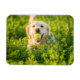 "¡Me Encantan Los Lectores Dorados!" Nevera imán con imagen de Golden Retriever llevando una pelota de tenis desde campos verdes exuberantes.