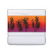 La neblina del atardecer tahitiano nubla palmeras negras en círculo
