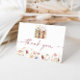 New Chapter Begins Storybook Gracias Card Esta tarjeta de agradecimiento incluye libros pintados a mano y flores silvestres con una tipografía moderna. ¡Una manera perfecta de agradecer a sus seres queridos por su día especial! ¡Edite fácilmente la mayoría de los términos para que coincidan con su evento! ¡Los colores del texto son completamente editables!