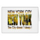 Diseño de Nueva York con la parte del horizonte del Midtown que riela a través de letras grandes de NY y que dice "el sueño del ` t del doesn de la ciudad…"