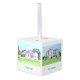 Ornamento navideño de Newport Rhode Island Cube con las acuarelas originales de The Breakers, Kingscote, Rosecliff y Marble House. En la parte superior del cubo están las palabras "Newport RI, Navidades 2024"