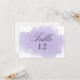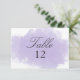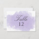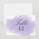 Esta tarjeta de número de mesa presenta una bonita neblina de lavanda en acuarela. El color de fondo y los campos de texto se pueden personalizar a su gusto.