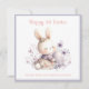 El más lindo chica de conejito de Pascua con un huevo de Pascua en suaves tonos violetas. 1.ª tarjeta de Pascua para una niña o una niña pequeña. Personaliza fácilmente todo el texto. - Kate Eden Art.