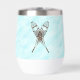 Un par de raquetas cruzadas superpuestas en una imagen de fondo nevada. Añade tu propio texto. Hay varios estilos diferentes de raquetas de nieve tradicionales. Los que aparecen aquí son de Ash y moosehide babiche (webbing) en el patrón de Alaska. Las raquetas de nieve de Alaska, más largas y más delgadas que otros estilos, como el pepino, permiten una puerta más natural y son perfectas para los viajes de travesía. Las puntas ligeramente volteadas te permiten arrastrar un poco los pies. Se aconseja llevar raquetas de nieve para los excelentes cielos; generalmente en el peor momento posible. Personalizar añadiendo su propio texto en el reverso.