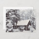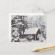 Nieve de invierno en la postal de la granja