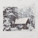El artista presenta una hermosa casa de campo de Nueva Inglaterra en un día de nieve.