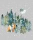 Disfrute de este divertido diseño acuático con esta familia de zorros en un bosque de vegetación eterna con una nevada mágica bajo una luna llena. ¡Que nieve!