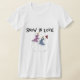 Dos hombres de nieve con pañuelos de invierno sostienen un corazón rojo y el texto lee Nieve en amor con camisetas de vacaciones de diseño de muñecas de nieve, bolsas de té, tarjetas, pegatinas, imanes y otros utensilios y regalos de diseño de muñecos de nieve.
