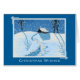 Lo que podría ser más pacífico que la nieve suave que cae en el campo. Siga el camino hasta la cabaña para disfrutar de unas vacaciones animadas. Creado en el sencillo estilo limpio de las tarjetas de mediados de siglo.