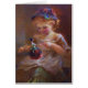 Juegos lindos de una niña con su muñeca. Ella está llevando un vestido verde y un gorra con una pluma del pavo real. Es un tipo de madera del palillo de muñeca. Es muy agradable.