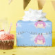 Niña colgada en la tela con fondo de cielo azul y nube. Se puede usar para Baby Shower.