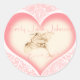 Ilustracion Cottagecore Fairycore Vintage ¡Es un Chica! Niña Retro Bebé montada en un corazón rosado vintage de la cigüeña. Pegatina de bebé rosa, precintos de invitación de bebé, pegatinas de invitaciones de género,