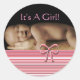 Tonos de rayas rosadas y corales Niñas Pegatinas con tu bebé foto lindo coral rosa y foto blanca, pequeño patrón rayado y un adorable arco rosado. Perfecto para envolver regalos con un toque personal en las duchas para bebés o para la visita hospitalaria más íntima.