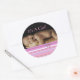 ¡Es un chica de nuestra Perla Preciosa! Chica recién nacido Invitación Pegatina de fotografía. Patrón de rayas rosadas y púrpuras con arco rosado fino