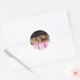 ¡Es un chica de nuestra Perla Preciosa! Chica recién nacido Invitación Pegatina de fotografía. Patrón de rayas rosadas y púrpuras,