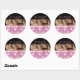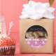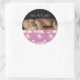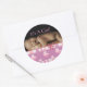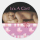 Niña bebé Pegatinas con la foto de su bebé en tonos rosados y morados con un lindo patrón retro de bebé buggy vintage.