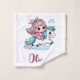 Esta alegre toalla muestra a una linda niña volando sobre un colorido unicornio.
