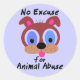 Lectura simple del texto "ninguna excusa para el abuso animal" con un dibujo animado de la cara de un perrito lindo. El perrito es marrón, de ojos azules, rosado-machihembrado. No puede haber justificación para el abuso de animales.