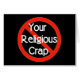 Guarde los golpeadores de la biblia de su pórtico y fuera de su espacio inmediato con esta raya vertical roja familiar del círculo y las palabras "su mierda religiosa." Gran regalo para los ateos y los librepensadores.