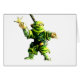 Ninja en el ataque verde de camuflaje con shuriken (estrella arrogante) y el personal.