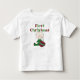 Un lindo bebé con un dormilón verde con un gran adorno de árbol rojo y verde y un tradicional texto rojo y verde que dice "Primera Navidad" en camisetas, bodysutis, bolsas de té y otros artículos que puedes personalizar fácilmente antes de pedir con el nombre de tu bebé!